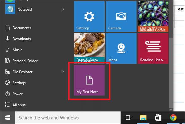 OneNote מותקן כברירת מחדל עם מהדורת המניות של Windows 10 (Home, Pro ו- Enterprise כלולה), וכל עוד תתעדכן לגרסה האחרונה של מערכת ההפעלה של מיקרוסופט, סמל האפליקציה OneNote יופיע אוטומטית בתפריט Start. . כדי להפעיל את OneNote, פשוט גלול מטה בתפריט ולחץ על אריח "OneNote" המודגש כאן: