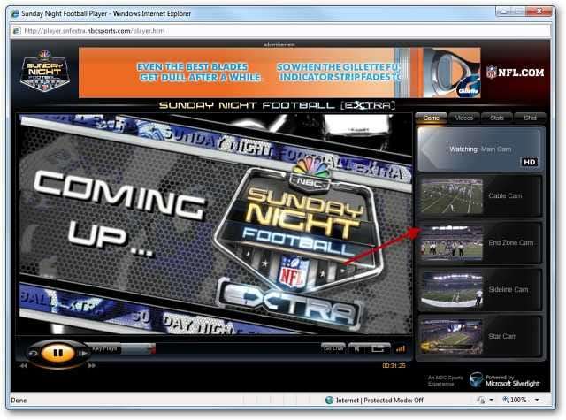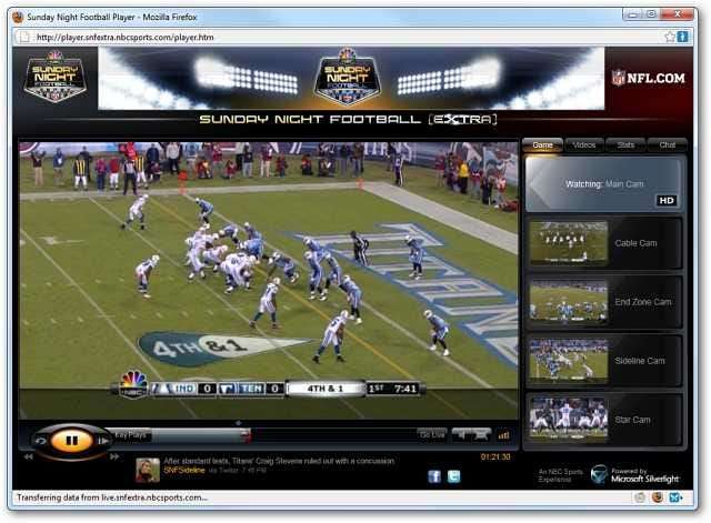 אם אתה לא יכול להגיע למשחק כי אתה בעבודה או משום מה לא מקבל NBC ... צפייה במשחקי יום ראשון בערב ברשת היא מהנה מאוד. גם אם יש לך את המשחק בבית ב- HDTV שלך, עדיין יש תכונות מגניבות שיאפשרו לך לעמוד בקצב המשחק המקוון מדי.