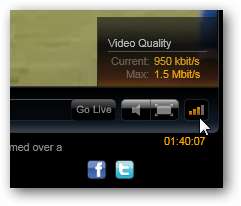 יש מד רוחב פס בפינה השמאלית שבו אתה יכול לקבוע את החיבור ואיכות הווידאו.