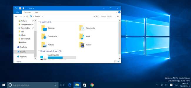 כמה תכונות במצב טאבלט פועלות יותר כמו במערכת Windows 8. כאשר אתה נמצא בתצוגת המשימות, כעת תוכל לגרור את התמונה הממוזערת של היישום לתחתית המסך כדי לסגור אותה - בדיוק כמו ב- Windows 8.
