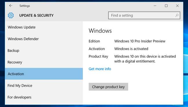 ניתן להסביר טוב יותר את התהליך "זכאות דיגיטלית" - כאשר המחשב האישי שלך מופעל אוטומטית מבלי להזין מפתח מוצר. תחת הגדרות> שדרוג ואבטחה> הפעלה, כעת תראה "Windows 10 במכשיר זה מופעל עם זכאות דיגיטלית" אם הוא מופעל ללא צורך במפתח מוצר.