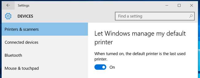 כברירת מחדל, Windows תנהל עבורך את מדפסת ברירת המחדל שלך. בכל פעם שאתה מדפיס למדפסת, מדפסת זו תסומן כמדפסת ברירת המחדל שלך. תוכל להשבית זאת על ידי מעבר אל הגדרות> התקנים> מדפסות וסורקים והשבית את האפשרות "תן ל- Windows לנהל את מדפסת ברירת המחדל שלי".