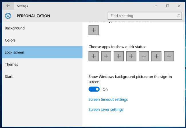 פשוט עבור אל הגדרות> התאמה אישית> מסך נעילה והשבית את האפשרות "הצג תמונת רקע של Windows במסך הכניסה" אם אתה מעדיף להשתמש ברקע בצבע רגיל. אתה עדיין צריך השתמש בפריצות אם אתה רוצה תמונת רקע מותאמת אישית , למרות זאת.
