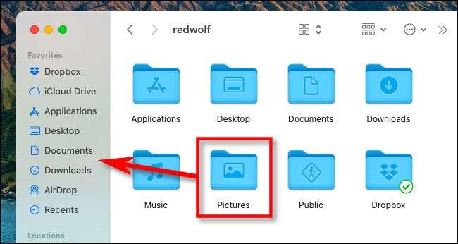 לקבלת גישה קלה יותר לתיקייה "תמונות" בעתיד, לחץ וגרור את הסמל "תמונות" לקטע "מועדפים" של סרגל הצד של Finder.