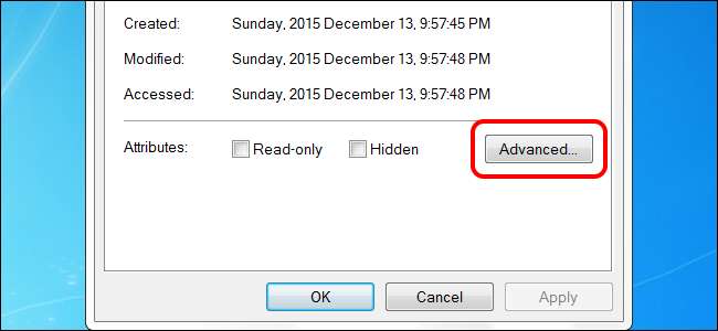 לפעמים, בעת הצגת מאפייני קובץ או תיקיה, אני רואה קובץ לחצן מתקדם מוצג תחת תכונות .