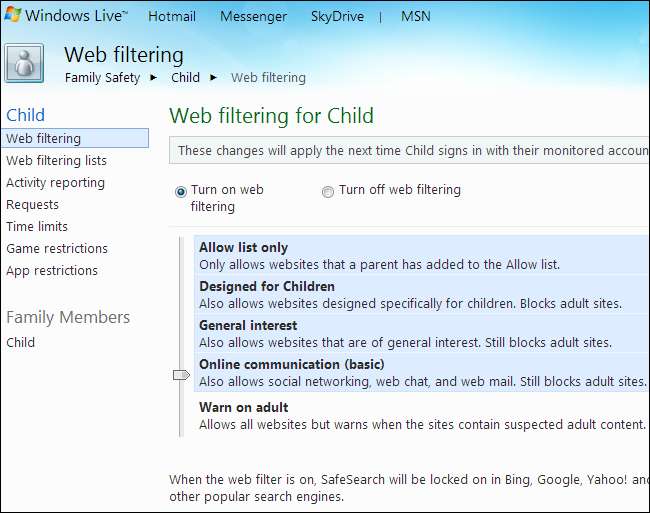 हालाँकि, विंडोज 7 में वेब फ़िल्टर शामिल नहीं है। Microsoft अभी भी परिवार सुरक्षा प्रदान करता है, एक मुफ्त कार्यक्रम जो आपको विंडोज 7 पर वेब फ़िल्टरिंग स्थापित करने की अनुमति देता है। अपने विंडोज 7 कंप्यूटर पर परिवार सुरक्षा कार्यक्रम स्थापित करें और आप इसकी सेटिंग प्रबंधित करने में सक्षम होंगे Microsoft परिवार सुरक्षा वेबसाइट । कार्यक्रम के भाग के रूप में उपलब्ध है Microsoft का Windows अनिवार्य पैकेज .