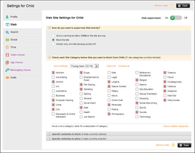 वहाँ भी समर्पित अभिभावकीय नियंत्रण समाधान हैं जिनके लिए आप भुगतान कर सकते हैं, जैसे कि प्रसिद्ध नेट नानी जो सभी ने सुना है। हालाँकि, आपको अभिभावकीय नियंत्रण समाधान के लिए भुगतान करने की आवश्यकता नहीं है। कई अन्य मुफ्त वेब फ़िल्टरिंग समाधान हैं जिनका आप उपयोग कर सकते हैं। उदाहरण के लिए, नॉर्टन एक मुफ्त प्रदान करता है नॉर्टन परिवार अभिभावक नियंत्रण आवेदन जो व्यापक रूप से अनुशंसित किया गया लगता है। ऑनलाइन खोज करने का प्रयास करें और आपको कई अन्य विकल्प मिलेंगे जो आपकी आवश्यकताओं के अनुरूप हो सकते हैं।