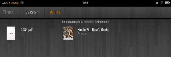 दस्तावेज़ों के लिए किंडल फायर के उपयोग की प्रणाली के बारे में जानें। आप USB केबल का उपयोग करके PDF, TXT और PRC स्वरूपित दस्तावेज़ों को डिवाइस में स्थानांतरित कर सकते हैं, या उन्हें ’डॉक्स’ ऐप के भीतर सूचीबद्ध ईमेल पते पर भेज सकते हैं और वे तुरंत डिवाइस पर पढ़ने के लिए उपलब्ध होंगे।