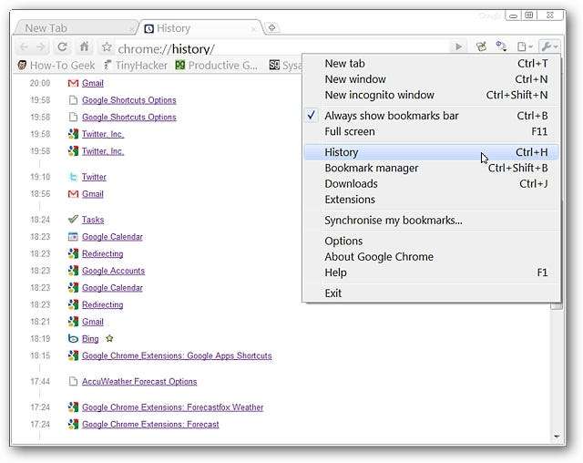 आमतौर पर क्रोम में अपने ब्राउज़िंग इतिहास को देखने के लिए दो तरीके हैं: