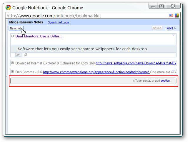 और आप जल्दी से एक और नया नोट जोड़ सकते हैं जब आपके पास पॉपअप विंडो खुली हो। पॉपअप विंडो के शीर्ष पर "पूर्ण पृष्ठ लिंक खोलें" पर ध्यान दें ...