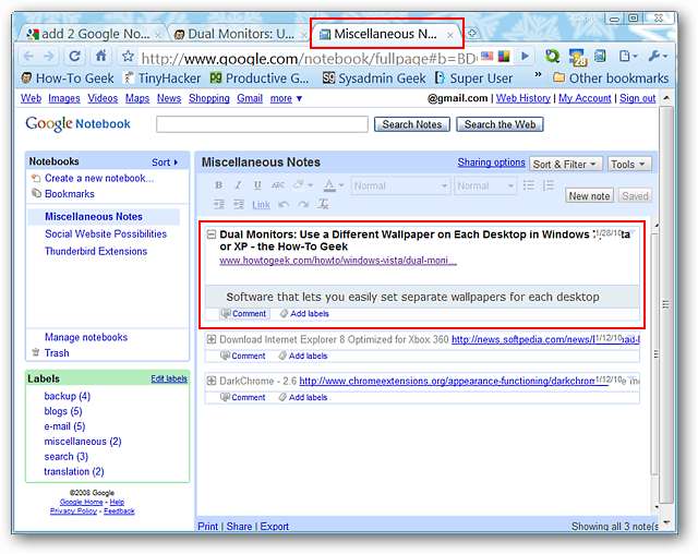 क्या आप दैनिक आधार पर Google नोटबुक का उपयोग करते हैं और Google Chrome में ब्राउज़ करते समय इसे एक्सेस करने का एक आसान तरीका चाहिए? तब आप निश्चित रूप से "2 Google नोटबुक जोड़ें" एक्सटेंशन पर एक नज़र रखना चाहेंगे।