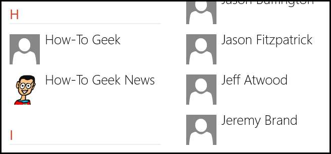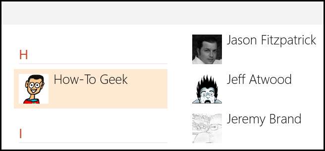 संपर्कों को जोड़ना वास्तव में काफी आसान है, हालांकि, विकल्प थोड़ा छिपा हुआ है यदि आप चीजों को करने के नए "आधुनिक यूआई" तरीके का उपयोग नहीं कर रहे हैं। आरंभ करने के लिए उन संपर्कों में से एक पर क्लिक करें जिन्हें आप मर्ज करना चाहते हैं।