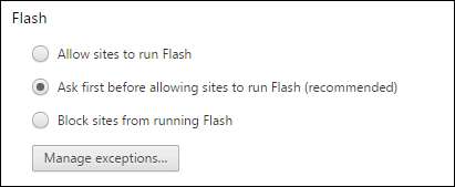 प्लगइन्स के लिए यह नया, अधिक प्रतिबंधात्मक दृष्टिकोण कई सुरक्षा, गति और स्थिरता लाभ प्रदान करता है। और वास्तव में, हम केवल डिफ़ॉल्ट फ़्लैश सेटिंग को अकेले छोड़ने की सलाह देते हैं, और फिर फ्लैश चलाने के लिए प्रत्येक व्यक्तिगत साइट की क्षमता को अनुमोदित या अस्वीकार करते हैं। यदि आप उस सेटिंग के बारे में अधिक जानना चाहते हैं - या फ्लैश को पूरी तरह से अक्षम कर दिया है - तो हमें मिल गया है Chrome में क्लिक-टू-प्ले प्लग-इन सक्षम करने के लिए एक शानदार मार्गदर्शिका .