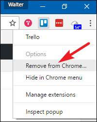 आप अपने टूलबार आइकन को राइट-क्लिक करके और "Chrome से निकालें" का चयन करके कई एक्सटेंशन को जल्दी से अनइंस्टॉल कर सकते हैं।