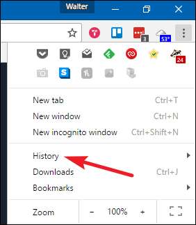 यदि आप केवल विशिष्ट वेबपृष्ठों के लिए इतिहास हटाना चाहते हैं, तो विकल्प मेनू खोलें, और फिर "इतिहास" चुनें। आप बस Ctrl + H भी दबा सकते हैं।