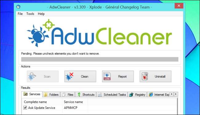 एंटीवायरस उत्पादों या मैन्युअल निष्कासन पर निर्भर होने के बजाय - हालाँकि मैन्युअल निष्कासन हमेशा संभव है - आप जैसे कार्यक्रमों का उपयोग कर सकते हैं ADW क्लीनर या जंकवेयर हटाने का उपकरण । ये प्रोग्राम स्वचालित रूप से आपके सिस्टम को गंदा जंकवेयर के लिए स्कैन करते हैं और इसे जल्दी से हटा सकते हैं। यह जाँचने का एक त्वरित तरीका है कि क्या कोई कंप्यूटर इस सामान से "संक्रमित" है और यदि है तो उसे हटा दें।