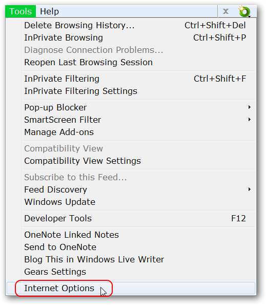 अगर आप को निष्क्रिय करना चाहते हैं तस्कबार थंबनेल पूर्वावलोकन Internet Explorer के लिए, यह काफी आसान है और इसे पूरा करने में आपको कुछ ही समय लगेगा। IE खोलें और Tools \ Internet Options में जाएं।