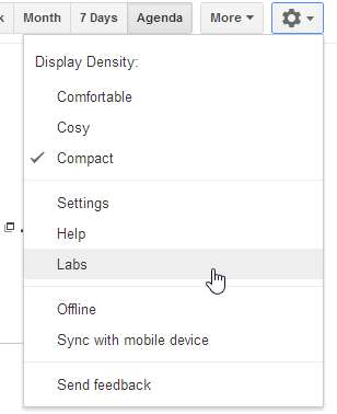 बस जीमेल के साथ के रूप में, गूगल कैलेंडर लैब्स को सेटिंग्स के माध्यम से एक्सेस किया जा सकता है। जीमेल के विपरीत, आप पहले अन्य सेटिंग्स के माध्यम से नेविगेट करने के बजाय सीधे लैब्स पर जा सकते हैं। कैलेंडर पृष्ठ के ऊपरी दाईं ओर स्थित गियर आइकन पर क्लिक करें और जो उपलब्ध है उसकी सूची के माध्यम से ब्राउज़ करने से पहले मेनू से लैब का चयन करें।
