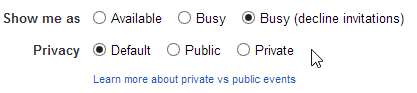 कुछ हफ़्ते की छुट्टी लेना और इस अवधि के दौरान आपके लिए भेजे गए समय में गिरावट और आमंत्रण खर्च करना नहीं चाहते हैं? ’स्वचालित रूप से घटने वाली घटनाओं को सक्षम करें’ और जब आप अपनी छुट्टी कैलेंडर में जोड़ते हैं, तो आप पाएंगे कि आपने अब अपनी उपलब्धता itations व्यस्त (निमंत्रण आमंत्रण) ’के लिए निर्धारित कर दी है।