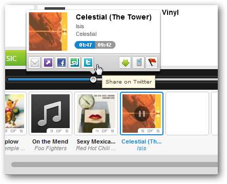 अपनी कतार के गानों से आप अपने दोस्तों को उनके साथ इसे साझा करने के लिए एक लिंक ईमेल कर सकते हैं। फेसबुक और ट्विटर जैसे प्रमुख सामाजिक नेटवर्क का उपयोग करने का एक विकल्प भी है।