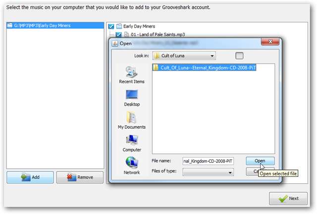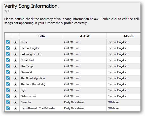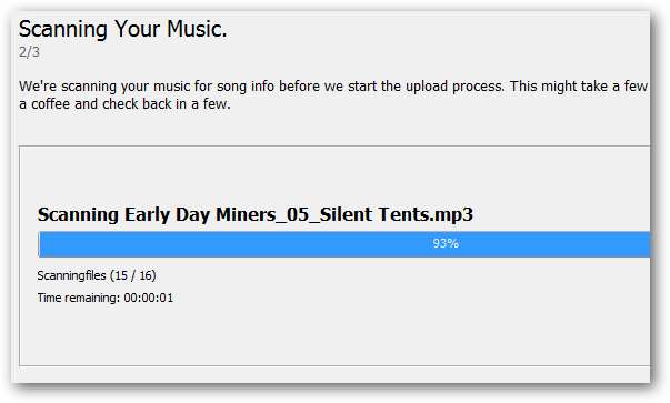 आपके द्वारा अपलोड किए जाने वाले गीतों का चयन करने के बाद, Grooveshark जानकारी के लिए संगीत को स्कैन करेगा।