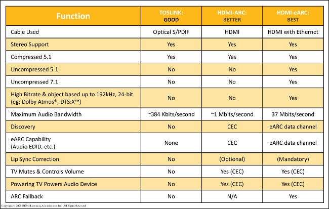 यदि आप एचडीएमआई पर डॉल्बी एटमॉस सिग्नल ले जाना चाहते हैं, तो आपको ईएआरसी की आवश्यकता होगी। कुछ अन्य संवर्द्धन भी हैं, जैसे मानक, बेहतर उपकरण की खोज और समर्पित ईएआरसी डेटा चैनल के रूप में उचित लिप-सिंक सुधार।