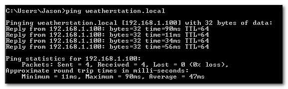 सफलता! Weatherstation.local 192.168.1.100 का समाधान करता है, जो स्थानीय नेटवर्क पर डिवाइस का वास्तविक आईपी पता है। अब से, कोई भी एप्लिकेशन या सेवा जिसे पहले रास्पबेरी पाई के आईपी पते की आवश्यकता थी, अब इसके बजाय .local पते का उपयोग कर सकते हैं।