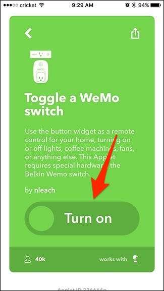 पृष्ठभूमि में स्वचालित रूप से काम करने वाले नियमों को लागू करने के अलावा, अधिकांश IFTTT एप्लेट्स की तरह, IFTTT में "बटन विजेट" भी होते हैं जो एप्लेट को एकल बटन प्रेस में स्ट्रीम करते हैं। आप इन बॉटनों को मोबाइल ऐप के सामने पृष्ठ पर, अपने iPhone के सूचना केंद्र में, या अपने Android डिवाइस पर होम स्क्रीन पर दाईं ओर रख सकते हैं।