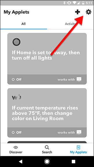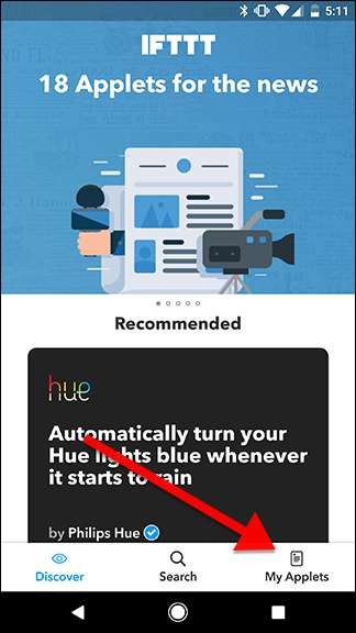 IFTTT ऐप को खोलने और स्क्रीन के निचले-दाएं कोने में "मेरे Applets" टैब पर टैप करके शुरू करें।