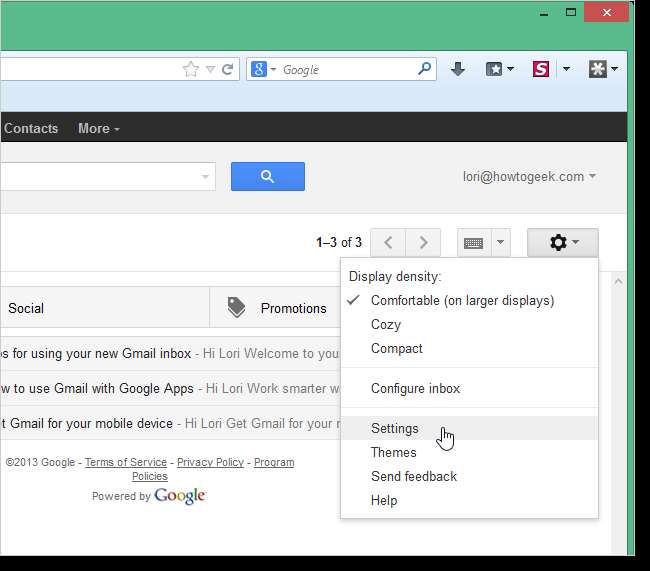 विंडो के ऊपरी, दाएं कोने में सेटिंग्स बटन पर क्लिक करें और ड्रॉप-डाउन मेनू से सेटिंग्स का चयन करें।