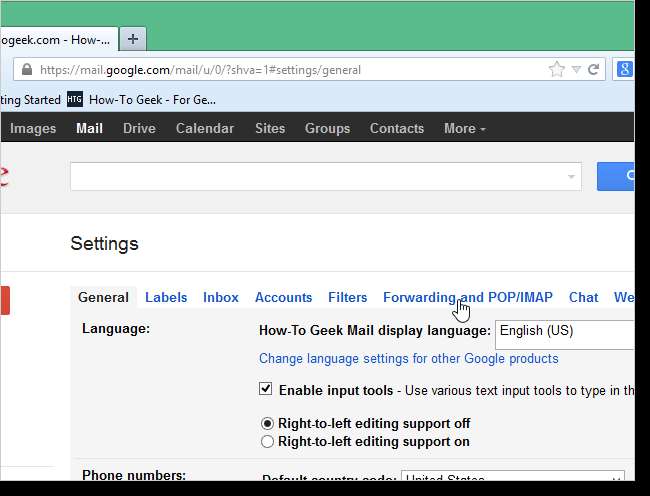 सेटिंग्स स्क्रीन पर, अग्रेषण और POP / IMAP पर क्लिक करें।