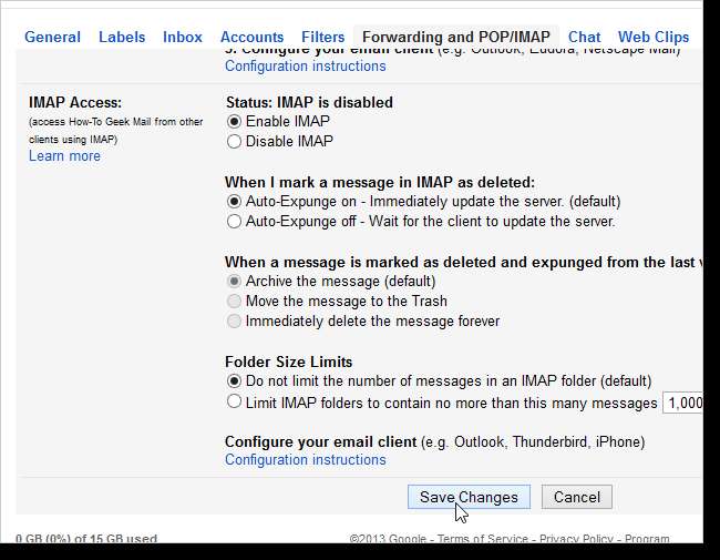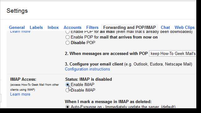 IMAP पहुँच अनुभाग तक नीचे स्क्रॉल करें और IMAP सक्षम करें चुनें।