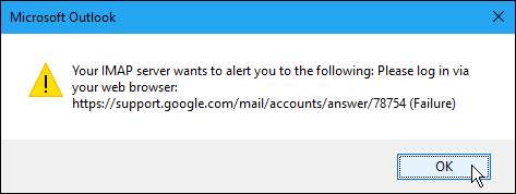 यदि आप अपने जीमेल खाते पर 2-कारक प्रमाणीकरण का उपयोग नहीं कर रहे हैं (हालांकि हम आपको सलाह देते हैं ), आपको अपने जीमेल खाते तक पहुंचने के लिए कम सुरक्षित ऐप्स की अनुमति देने की आवश्यकता होगी। Gmail Google ऐप्स को एक्सेस करने से कम सुरक्षित ऐप्स को ब्लॉक करता है क्योंकि इन ऐप्स को तोड़ना आसान है। कम सुरक्षित ऐप्स को ब्लॉक करना आपके Google खाते को सुरक्षित रखने में मदद करता है। यदि आप एक ऐसे जीमेल खाते को जोड़ने की कोशिश करते हैं जिसमें 2-कारक प्रमाणीकरण नहीं है, तो आपको निम्न त्रुटि संवाद बॉक्स दिखाई देगा।
