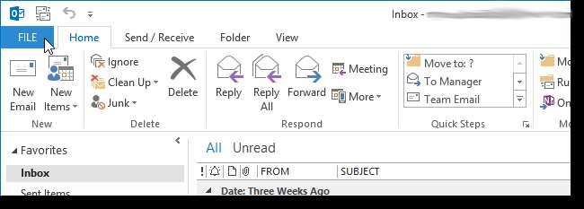 अपना ब्राउज़र बंद करें और आउटलुक खोलें। अपना जीमेल खाता जोड़ना शुरू करने के लिए, फ़ाइल टैब पर क्लिक करें।