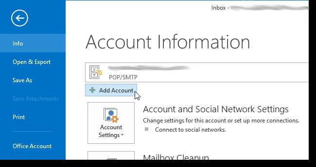 खाता जानकारी स्क्रीन पर, खाता जोड़ें पर क्लिक करें।
