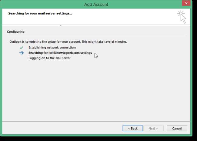 सेटअप की प्रगति प्रदर्शित करता है। स्वचालित प्रक्रिया काम कर सकती है या नहीं भी।