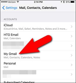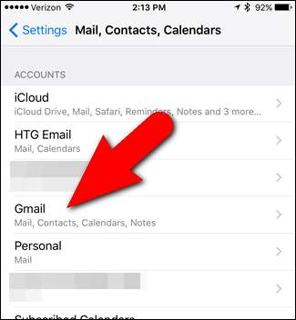 फिर, Gmail के अंतर्गत "खाता" पर टैप करें।