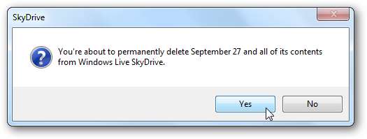 आप सीधे स्काईड्राइव एक्सप्लोरर से फाइलें नहीं खोल सकते, लेकिन आप उन्हें कॉपी, डिलीट और नाम बदल सकते हैं। किसी आइटम को हटाने से पहले, आपको एक पुष्टिकरण संवाद बॉक्स मिलेगा, जो यह सुनिश्चित करेगा कि आप इसे स्काईड्राइव से स्थायी रूप से हटाना चाहते हैं।