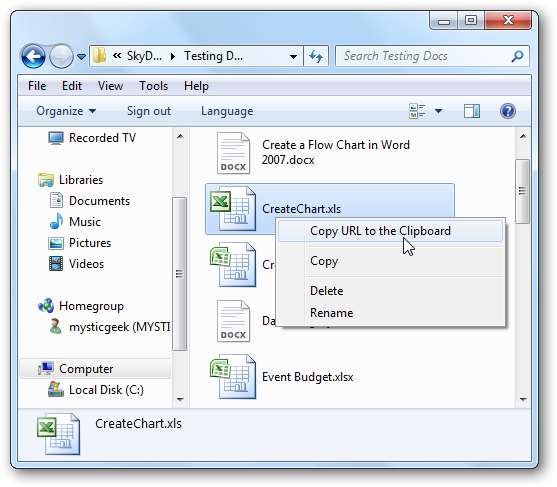 एक अन्य आसान सुविधा आपके स्काईड्राइव पर एक साझा दस्तावेज़ में URL को कॉपी करने में सक्षम हो रही है ताकि आप अन्य उपयोगकर्ताओं को आसानी से इंगित कर सकें।