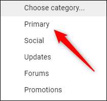 उस श्रेणी को चुनें जिसे आप ईमेल को वितरित करना चाहते हैं। हम इस उदाहरण में "प्राथमिक" इनबॉक्स टैब चुनेंगे।