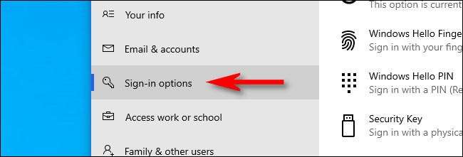 "खाते," साइडबार में "साइन-इन विकल्प" पर क्लिक करें।