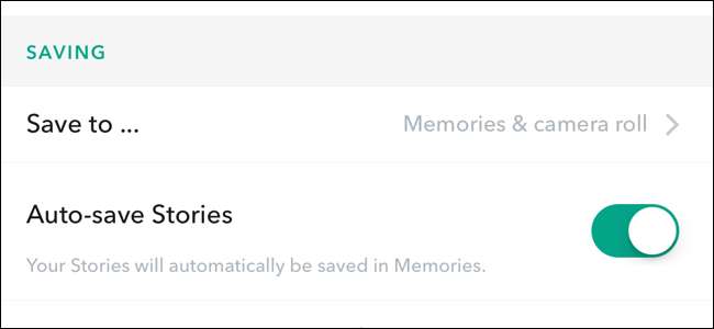 ऑटो-सेव स्टोरीज़ को पलटें। Save to… मेनू से, आप चुन सकते हैं कि आप अपनी कहानियों को अपनी स्मृतियों या अपने संस्मरणों और अपने फोन में सहेजना चाहते हैं या नहीं। मैं यादें और कैमरा रोल की सिफारिश नहीं करता हूं।