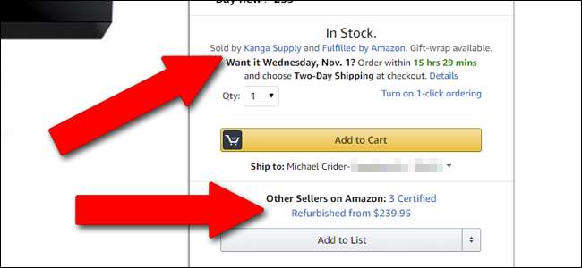 तृतीय-पक्ष विक्रेता मुख्य खोज परिणामों में दिखाते हैं जब अमेज़न उस विशेष वस्तु को नहीं बेचता है। कभी-कभी, यदि तीसरा पक्ष अमेज़ॅन से कम में बेच रहा है, तो यह डिफ़ॉल्ट सूची होगी। (अमेज़ॅन के तृतीय-पक्ष विक्रेता इसे "खरीद बॉक्स जीतना" कहते हैं) अन्य सभी समय पर, आप "अमेज़न पर अन्य विक्रेताओं" के लिंक के तहत तीसरे पक्ष को पा सकते हैं।