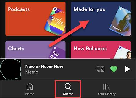 एक ब्लेंड प्लेलिस्ट केवल मोबाइल ऐप का उपयोग करके बनाई जा सकती है आई - फ़ोन , ipad , या एंड्रॉयड फोन या टैबलेट। प्रारंभ करने के लिए, Spotify ऐप खोलें और "खोज" टैब से "आपके लिए बनाया गया" कार्ड टैप करें।