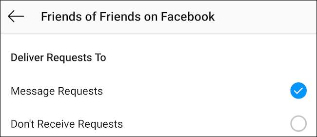 फेसबुक पर आपके दोस्तों के मित्र भी मैसेंजर से इंस्टाग्राम पर आपके संपर्क में आ सकते हैं। इसे समाप्त करने के लिए, "संदेश नियंत्रण" पृष्ठ पर लौटें और "फेसबुक पर दोस्तों के दोस्तों" में जाएं।