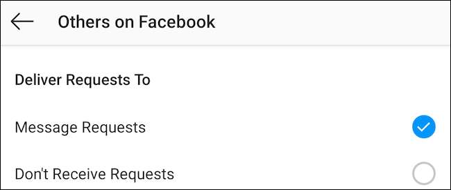 अंत में, "फेसबुक पर अन्य" सेटिंग आपको इंस्टाग्राम पर संदेश देने के लिए फेसबुक मैसेंजर से अजनबियों पर प्रतिबंध लगाने में सक्षम बनाती है।