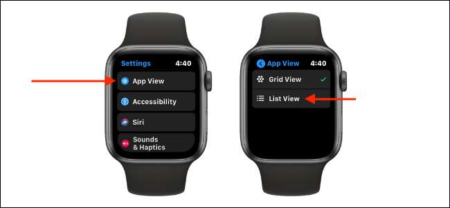 लेकिन वॉचोस 7 में शुरू होने पर, ऐप्पल ने पूरे ऑपरेटिंग सिस्टम में फोर्स टच फीचर को हटा दिया है (यह प्रक्रिया को भी बदलता है सभी अधिसूचनाओं को साफ़ करना )। तो अब, आपको सूची दृश्य पर स्विच करने के लिए सेटिंग्स ऐप पर जाना होगा। [1 1]
