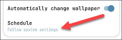 इसके बाद, "अनुसूची" का चयन करें और चुनें कि आप वॉलपेपर को कैसे बदलना चाहते हैं। आप इसे सिस्टम सेटिंग का पालन कर सकते हैं या एक अलग शेड्यूल बना सकते हैं।