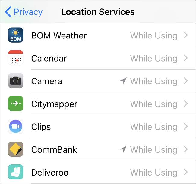 आपको कुछ एप्लिकेशन के बगल में प्रतीक भी मिलेंगे, जो iOS लोकेशन सर्विसेज आइकन (उत्तर-पश्चिम की ओर इशारा करते हुए तीर) से मिलते जुलते हैं। यह समझने में आपकी सहायता कर सकता है कि कौन से ऐप्स आपके स्थान का उपयोग कर रहे हैं: