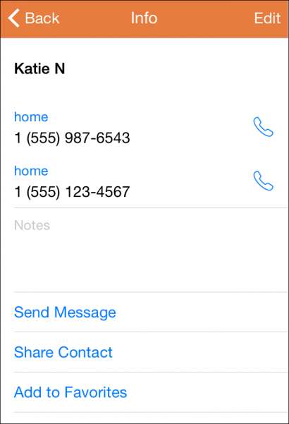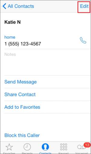 इस उदाहरण में आप देख सकते हैं कि मैंने "गलती से" एक ही दोस्त को दो बार जोड़ा, प्रत्येक को एक ही नंबर और पहचान की जानकारी। इसे ठीक करने के लिए, बस संपर्कों में से एक पर क्लिक करें (यदि डेटा समान है, तो इस बारे में चिंता न करें कि कोई व्यक्ति किस रास्ते से टॉस करता है), और ऊपरी दाएँ हाथ के कोने में "संपादित करें" बटन पर क्लिक करें।